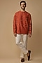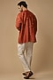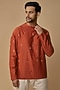Featuring a burnt orange short kurta in cotton silk base with embroidery. Perfect wear for a puja ceremony or a casual outing.