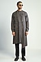 Featuring a grey kurta in handwoven cotton base with embroidery. Accentuate it with pants and mojaris for a festive occasion or pooja ceremony.