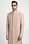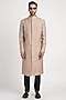 Featuring a hemp colored long jacket in silk blend base. Style it with pants and mojaris for a wedding, sangeet or engagement ceremony.