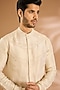 Featuring an ivory kurta in cotton blend base. Style it up with pants, stole and kolhapuri sandal for a festive occasion, wedding or engagement ceremony.