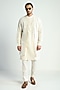 Featuring an ivory kurta in cotton silk base. Accentuate it with pants and mojaris for a festive occasion or pooja ceremony.