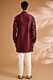 Featuring a red kurta in cotton blend base. Style it up with pants, stole and kolhapuri sandal for a festive occasion, wedding or engagement ceremony.