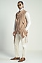 Featuring a rose taupe waistcoat in silk blend base. Accentuate it with pant set and shoes for a complete look.