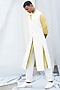 Featuring a white sleeveless waistcoat in linen blend base with front slits. This contains only one piece.
