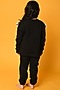 Featuring a black sweatshirt in cotton fleece base with pinstripes. It is paired with matching jogger pants having an elasticed waistband and adjustable drawstrings.
