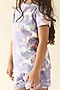Featuring a purple t-shirt in cotton jersey base with print and short sleeves. It is paired with matching shorts having an elasticated waist.