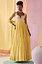 Featuring a butter yellow hand-dyed anarkali in raw silk and chinon chiffon base with glass beads, pearl and floral hand embroidery. It is paired with a soft net dupatta. Accentuate it with statement jewellery and heels for a festive look.
