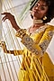 Featuring a mustard yellow peplum jacket in raw silk base with zardosi and pearl hand embroidery. It is paired with satin hand-dyed draped low crotch pants. Accentuate it with heels and statement earrings for a cocktail night, wedding reception, or festive soiree.