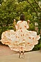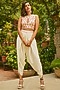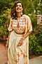 Featuring an orange crop top in muslin silk and cotton base with tie-dye print and hand embroidery. It is paired with a matching shrug and dhoti pants.