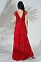 Featuring a red gathered gown in raw silk and chinon chiffon base with hand embroidery. Style it with statement jewellery and heels for a wedding or engagement ceremony.