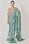 Sea Green Muslin Silk Chevron Printed Saree Set