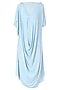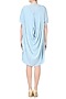 Featuring a sky blue V neck cowl draped dress in stretch knit base with sewn up button detailing at the centre, back and either end.