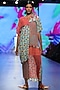 Featuring a multi color long button down dress in silk base with multiple patches, embroidered detail in gota braid, starfish, chevron and pola printing.