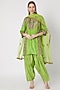 Featuring a green kurta in silk base with embroidery. It is paired with matching salwar pants having print and a net dupatta.