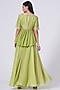 Featuring a leaf green peplum jacket in bamberg silk and georgette base with zardosi embroidery. It is paired with matching organza palazzo pants and an inner.