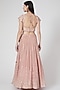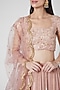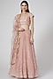 Featuring a light pink lehenga in bamberg silk, georgette, and net base with sequins and zardosi embroidery. It is paired with a matching blouse and a dupatta.