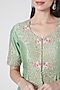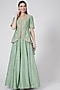 Featuring a mint green skirt in bamberg silk base with sequins and zardosi embroidery. It is paired with a jacket top. Accentuate it with statement jewellery and heels for a cocktail party, mehendi or sangeet ceremony.