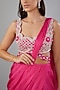 Featuring a pink draped saree in georgette base. It is paired with an embroidered blouse. Perfect wear for cocktail events.