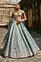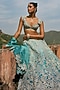 Featuring a blue ombre lehenga in organza base with embroidery. It is paired with an embroidered blouse and a dupattas. Style it with kundan jewellery, a sleek bun adorned with fresh gajra and embellished heels for weddings, sangeet nights, festive celebrations, or a grand bridal occasion.