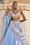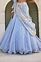Featuring a blue lehenga in organza base with embroidery. It is paired with an embroidered blouse and a dupattas. Style it with kundan jewellery, a sleek bun adorned with fresh gajra and embellished heels for weddings, sangeet nights, festive celebrations, or a grand bridal occasion.