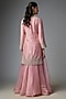 Featuring a blush pink kurta in dupion silk and organza base with hand embroidery. It is paired with sharara and a dupatta. Accentuate it with zircon jewellery and block heels for a sangeet or wedding ceremony.