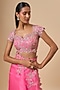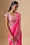 Featuring a candy pink ruffled saree in organza base with zari cutwork hand embroidery. It is paired with a blouse. Style it with statement jewellery and block heels for weddings or sangeet ceremonies.