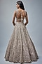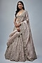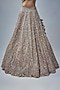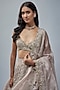 Featuring a champagne lehenga in organza base with hand embroidery. It is paired with a blouse and a dupatta. Style your designer lehenga with statement jewellery, a sleek hairstyle, and embroidered juttis or heels. Complete the look with a matching clutch for a regal and timeless appeal.