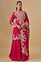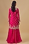 Featuring a cherry red kurta in dupion silk base with hand embroidery. It is paired with sharara pants and a dupatta. Accentuate it with statement jhumkas and embroidered heels for a regal ethnic charm, Perfect for weddings, festive celebrations and traditional gatherings.