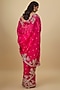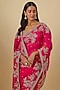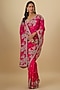 Featuring a cherry red saree in organza base with hand embroidery. It is paired with an unstitched blouse piece. Style it with diamond jewellery and block heels, perfect for a wedding, sangeet or engagement ceremony.