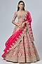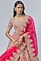 Featuring a cherry red lehenga in organza base. It is paired with a blouse and a dupatta. Accentuate it with statement jewellery, low bun and heels for a wedding or engagement ceremony.