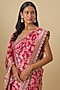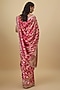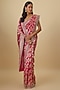 Featuring a cherry red saree in silk banarasi base with hand embroidery and a zardosi border detail. It is paired with an unstitched blouse piece. Style it with diamond jewellery and block heels, perfect for a wedding, sangeet or engagement ceremony.