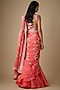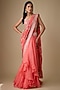 Coral Organza & Chiffon Hand Embroidered Ruffled Saree Set