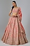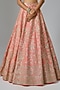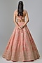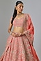Featuring a coral lehenga in organza base. It is paired with a blouse and a dupatta. Style it with kundan polki jewellery and block heels, perfect for a wedding, sangeet or engagement ceremony.
