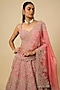 Featuring a coral lehenga in organza base with hand embroidery. It is paired with an embroidered blouse and an embroidered dupatta. Accentuate the designer lehenga with pearl or silver jewellery, embellished heels and a potli bag for a bridal look, Perfect for a wedding, sangeet or engagement ceremony.