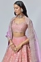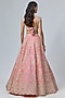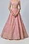Featuring a coral pink lehenga in organza base. It is paired with a blouse and a dupatta. Accentuate it with statement jewellery, low bun and heels for a wedding or engagement ceremony.