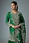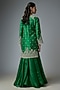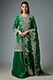 Featuring an emerald green kurta in dupion silk and organza base with hand embroidery. It is paired with sharara and a dupatta. Accentuate it with zircon jewellery and block heels for a mehendi or wedding ceremony.