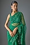 Emerald Green Net Sequins Embroidered Ruffled Saree Set