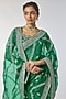 Featuring an emerald green checkered saree in organza base with aari hand and machine embroidery. It is paired with a blouse. Accentuate it with diamond jewellery and block heels for sangeet, mehendi ceremonies or weddings.