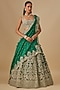 Featuring an emerald green lehenga in organza base with hand embroidery. It is paired with a blouse and a dupatta. Accentuate it with diamond jewellery and heels for an elegant statement, Perfect for weddings, receptions and grand festive occasions.