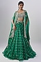 Featuring an emerald green lehenga in organza base with hand embroidery. It is paired with an embroidered blouse and a dupatta. Accentuate it with zircon jewellery and block heels for a wedding, mehendi or an engagement ceremony.