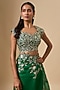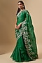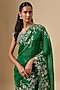 Featuring an emerald green ruffled saree in organza base with zari cutwork hand embroidery. It is paired with a blouse. Style it with statement jewellery and block heels for weddings or mehendi ceremonies.