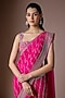 Featuring a hot pink draped saree in chiffon base. It is paired with a blouse. Style it with statement emerald jewellery, a sleek bun and gold heels for weddings, festive celebrations, cocktail evenings or reception functions.