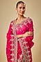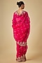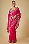 Featuring a hot pink saree in organza base with hand embroidery. It is paired with an unstitched blouse. Accentuate it with statement jewellery and heels for festive occasions or wedding ceremony.