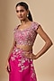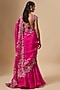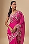Featuring a hot pink ruffled saree in organza base with zari cutwork hand embroidery. It is paired with a blouse. Style it with statement jewellery and block heels for weddings or sangeet ceremonies.