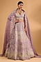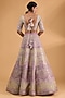 Featuring an ivory-lavender lehenga in organza base with applique thread, cutdana hand and machine embroidery. It is paired with a blouse and a dupatta. Accentuate it with statement earrings and heels for a wedding, engagement or sangeet ceremony.