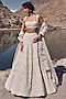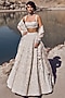 Featuring an ivory lehenga in organza base. It is paired with a blouse and a dupatta. Style it with kundan polki jewellery and block heels, perfect for a wedding, sangeet or engagement ceremony.