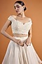 Featuring an ivory layered lehenga in organza base with pearl embroidery. It is paired with an off-shoulder crop top. Perfect wear for a bridesmaid for a wedding or sangeet ceremony.