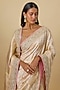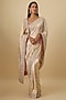 Featuring an ivory saree in silk banarasi base with hand embroidery and a zardosi border detail. It is paired with an unstitched blouse piece. Style it with diamond jewellery and block heels, perfect for a wedding, sangeet or engagement ceremony.