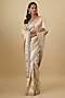 Featuring an ivory saree in silk banarasi base with hand embroidery and a zardosi border detail. It is paired with an unstitched blouse piece. Style it with diamond jewellery and block heels, perfect for a wedding, sangeet or engagement ceremony.