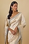 Ivory Silk Banarasi Hand Embroidered Saree Set